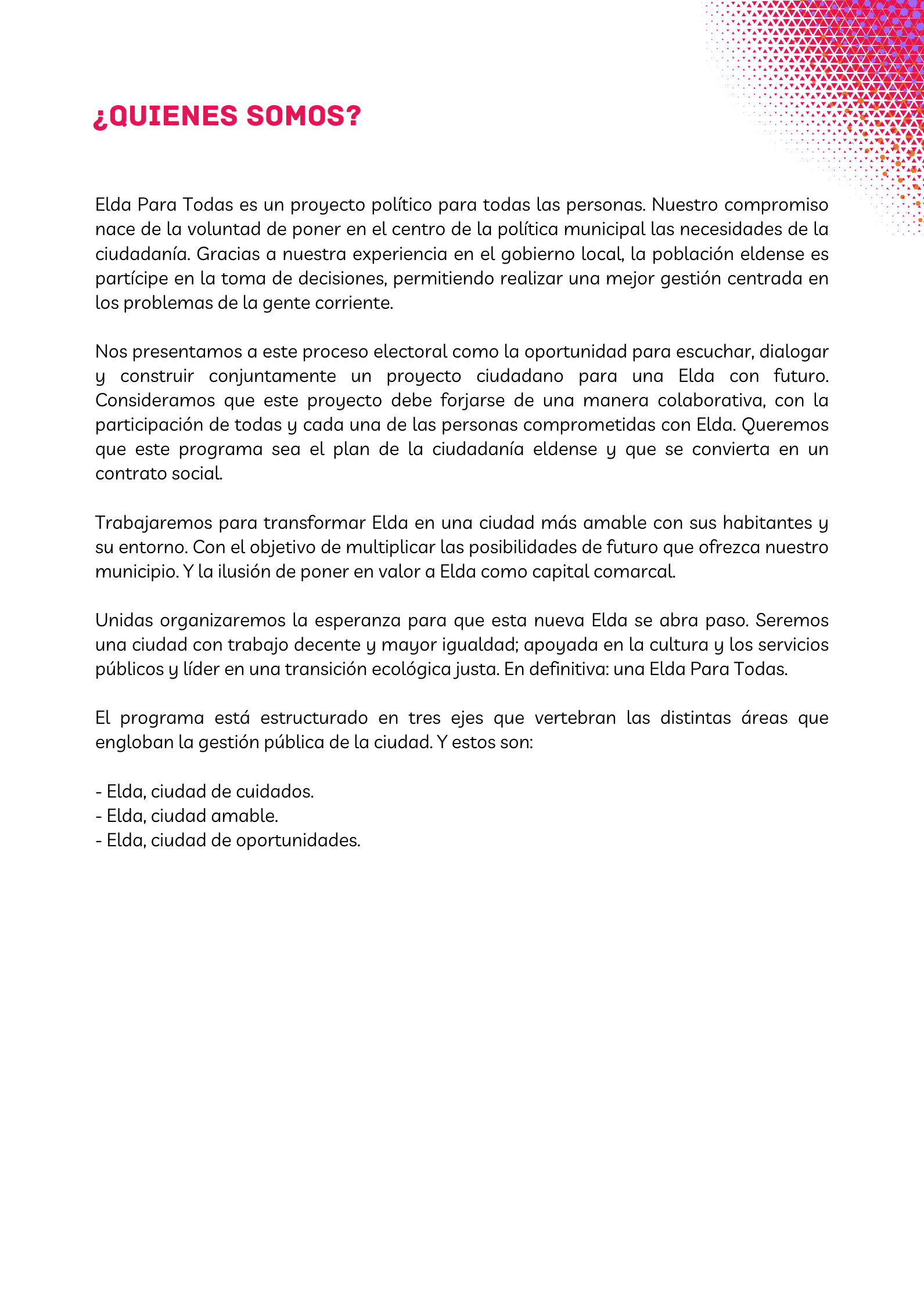 Elda Para Todas 💜 🟥 Esquerra Unida Elda. 🟧 Compromís Elda. 🟪 Podemos Elda.